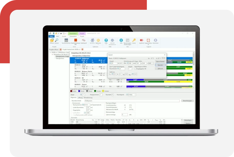 - Separate Stammdatenverwaltung für jeden Benutzer, individuelle Bearbeitung von Bauteilen, Räumen, Baustoffen etc.